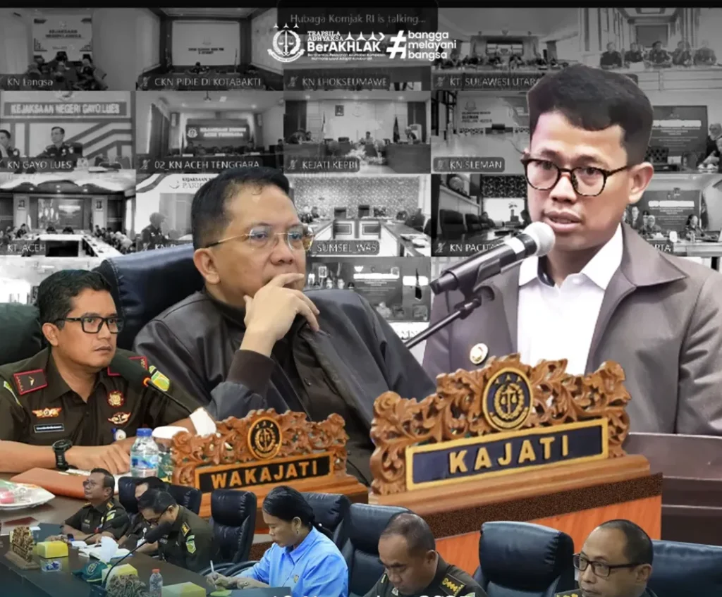 Surabaya – Kepala Kejaksaan Tinggi Jawa Timur, Dr. Kuntadi, S.H., M.H., bersama Wakajati, para Asisten, Koordinator, Pemeriksa pada Bidang Pengawasan, serta para Kasubbag Bidang Pembinaan mengikuti Rapat Koordinasi Nasional Komisi Kejaksaan RI bersama Bidang Pengawasan dan Bidang Pembinaan Kejaksaan RI secara daring di Ruang Rapat Kejati Jatim, Kamis (20/11/2025).