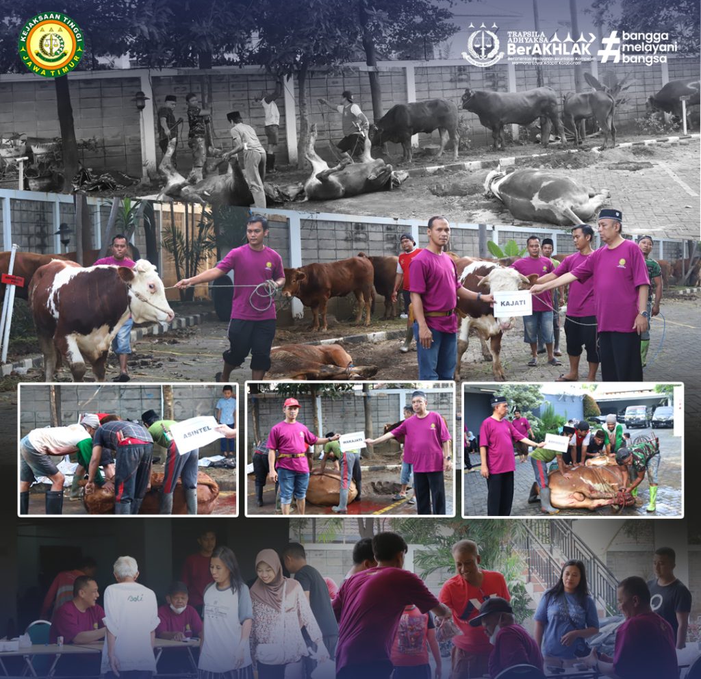Surabaya – Kejaksaan Tinggi Jawa Timur melalui Panitia Qurban 1446 Hijriah telah melaksanakan kegiatan penyembelihan hewan qurban pada hari Sabtu, 7 Juni 2024. Kegiatan dimulai pada pukul 07.30 WIB di halaman parkir kantor Kejati Jatim dan berlangsung dengan tertib, lancar, serta penuh semangat kebersamaan.